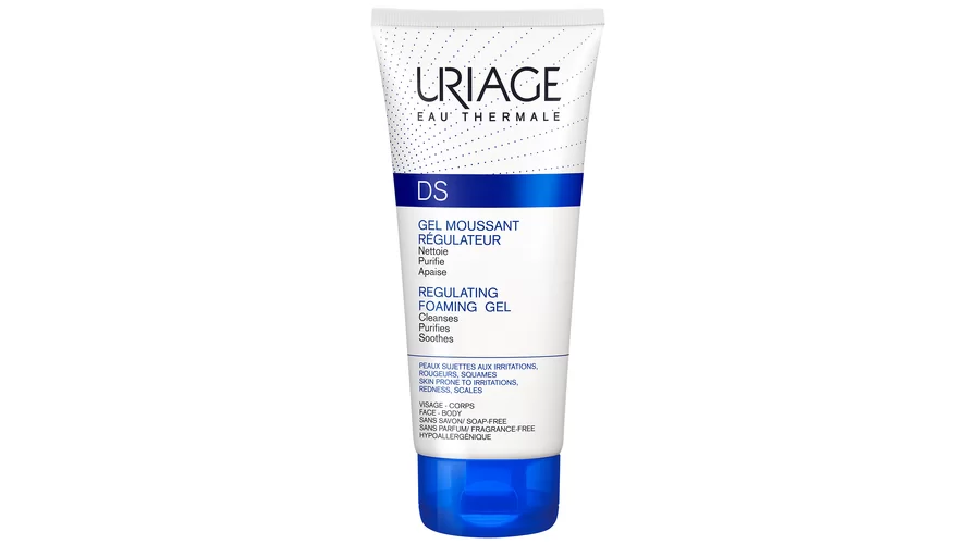 Uriage DS Gel Nettoyant – мягкий очищающий гель, который подходит для гигиены лица, тела и кожи головы. Средство предназначено для кожи, склонной к раздражению и покраснению, а также может использоваться как шампунь для ухода за волосами. Формула с цинком, фитосфингозином и термальной водой Урьяж уменьшает зуд, устраняет покраснение и шелушение, помогая сохранить баланс микрофлоры кожи.